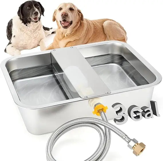 Widely Applicable: Our product list includes a 3 gallon auto fill dog waterer, a hose with 1/2 inch and 3/4 inch connectors on both ends, a sealing rope, a baffle, an O-ring, a screwdriver, some screws and non-slip mats. It can be used in yards, gardens, farms and other places to provide a clean drinking environment for your pets. The self filling dog water bowl is suitable for dogs, horses, sheep, chickens, geese, cats, livestock and other medium, large-sized animals.